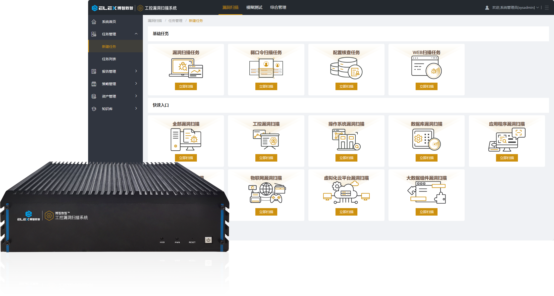 | 常规漏洞扫描 | 工控系统漏洞检测 | 配置核查 | 弱口令扫描 | 资产管理 | 定时及周期扫描 |